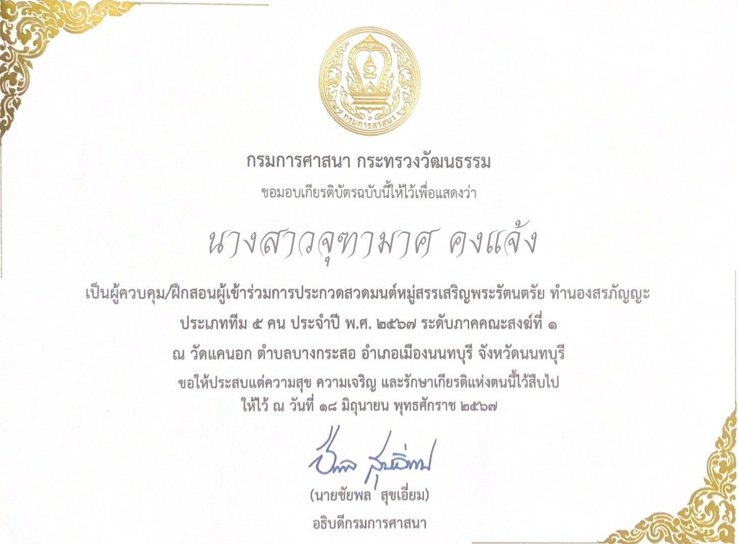 นางสาวจุฑามาศ คงแจ้ง |
