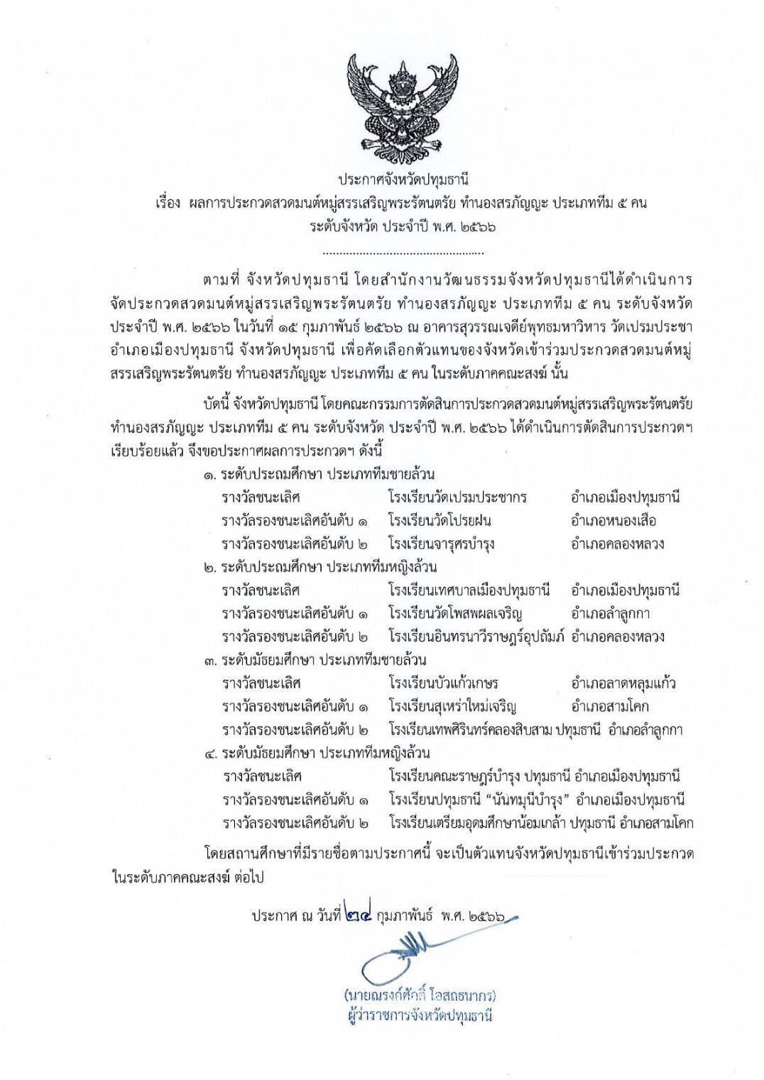 โครงการประกวดสวดมนต์หมู่สรรเสริญพระรัตนตรัย ทำนองสรภัญญะ ประเภททีม ๕ คน ระดับจังหวัด ประจำปี ๒๕๖๖